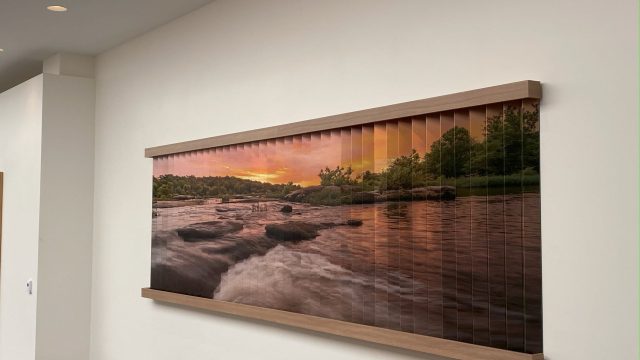 Given the client's art and parameters, I was able to produce and install both the wall vinyl as well as the dimensional panels that spanned ~44'.